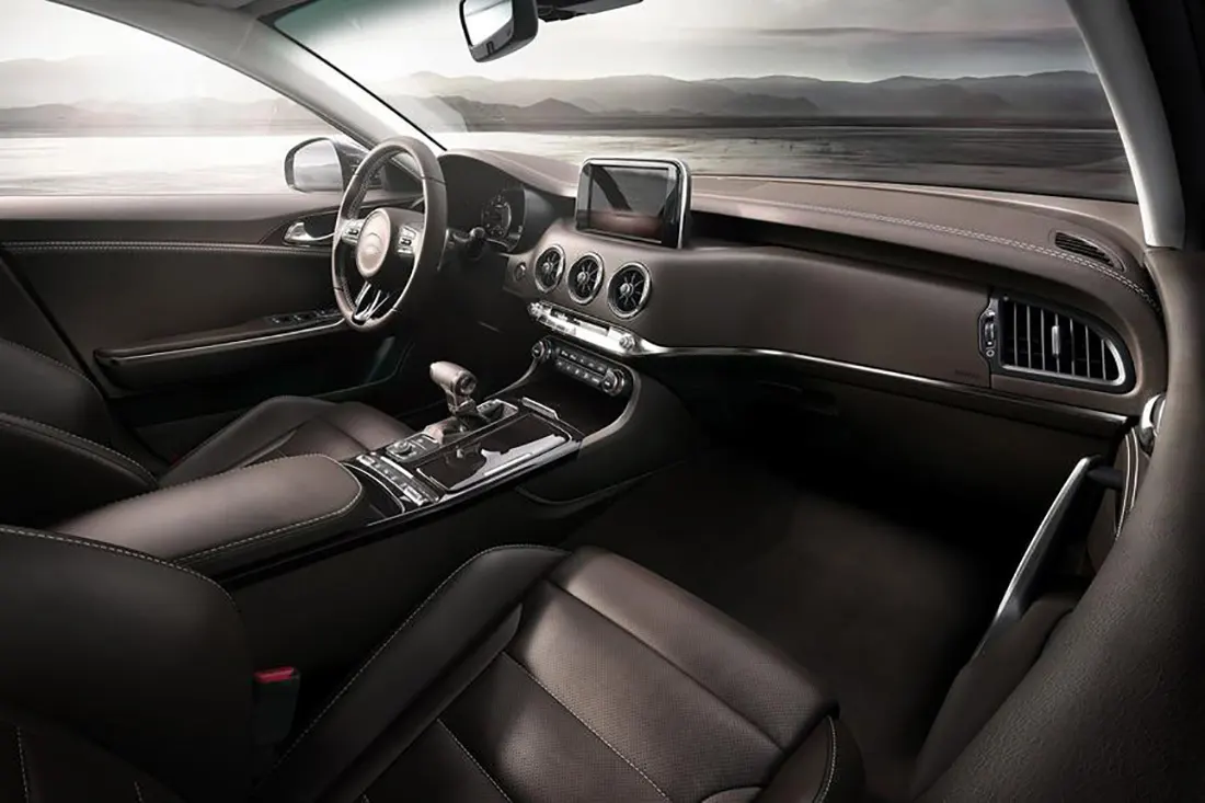 В сравнении с другими моделями Kia фастбэк отличает несколько «приземленный» и вытянутый кузов. Спереди у него размещена стандартная, но немного удлиненная радиаторная решетка. То же самое касается и головной оптики со светодиодным наполнением. Передний бампер дополняется расширенным нижним воздухозаборником и достаточно крупными боковыми. За колесными крыльями располагаются отверстия для выхода воздушных потоков. Вдоль верха дверцы багажного отсека пролегает овальный спойлер, который визуально совмещен с компактной светодиодной оптикой треугольной формы и со скругленными углами. На заднем бампере присутствуют диффузор и сдвоенные патрубки выхлопной системы, закрепленные по обоим бокам.